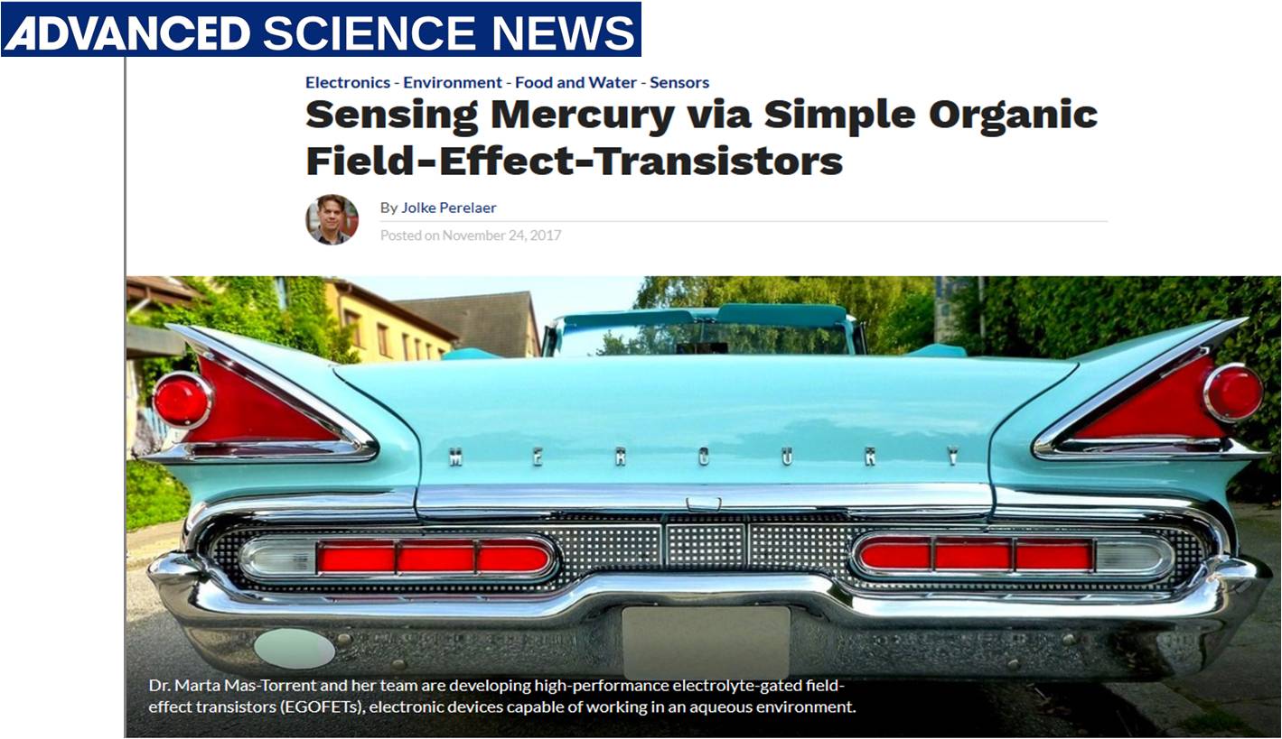Written on 28 December 2017. News from our work One of our papers has been chosen to be highlighted on the Advance Science News web site: http://www.advancedsciencenews.com/sensing-mercury-via-simple-organic-field-effect-transistors/ Hits: 1039 Prev Next