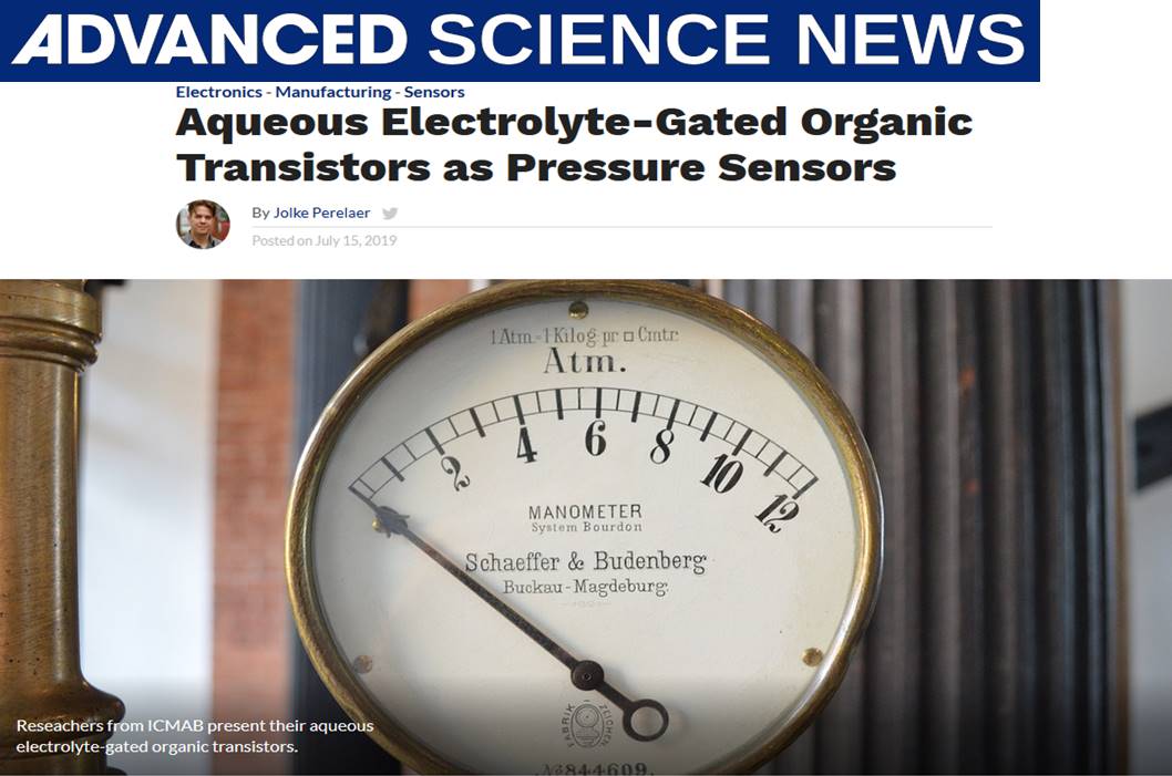 Written on 28 December 2017. Our work highlighted in Advanced Science News One of our papers has been chosen to be highlighted on the Advance Science News web site: https://www.advancedsciencenews.com/aqueous-electrolyte-gated-organic-transistors-as-pressure-sensors/ Hits: 819 Prev Next